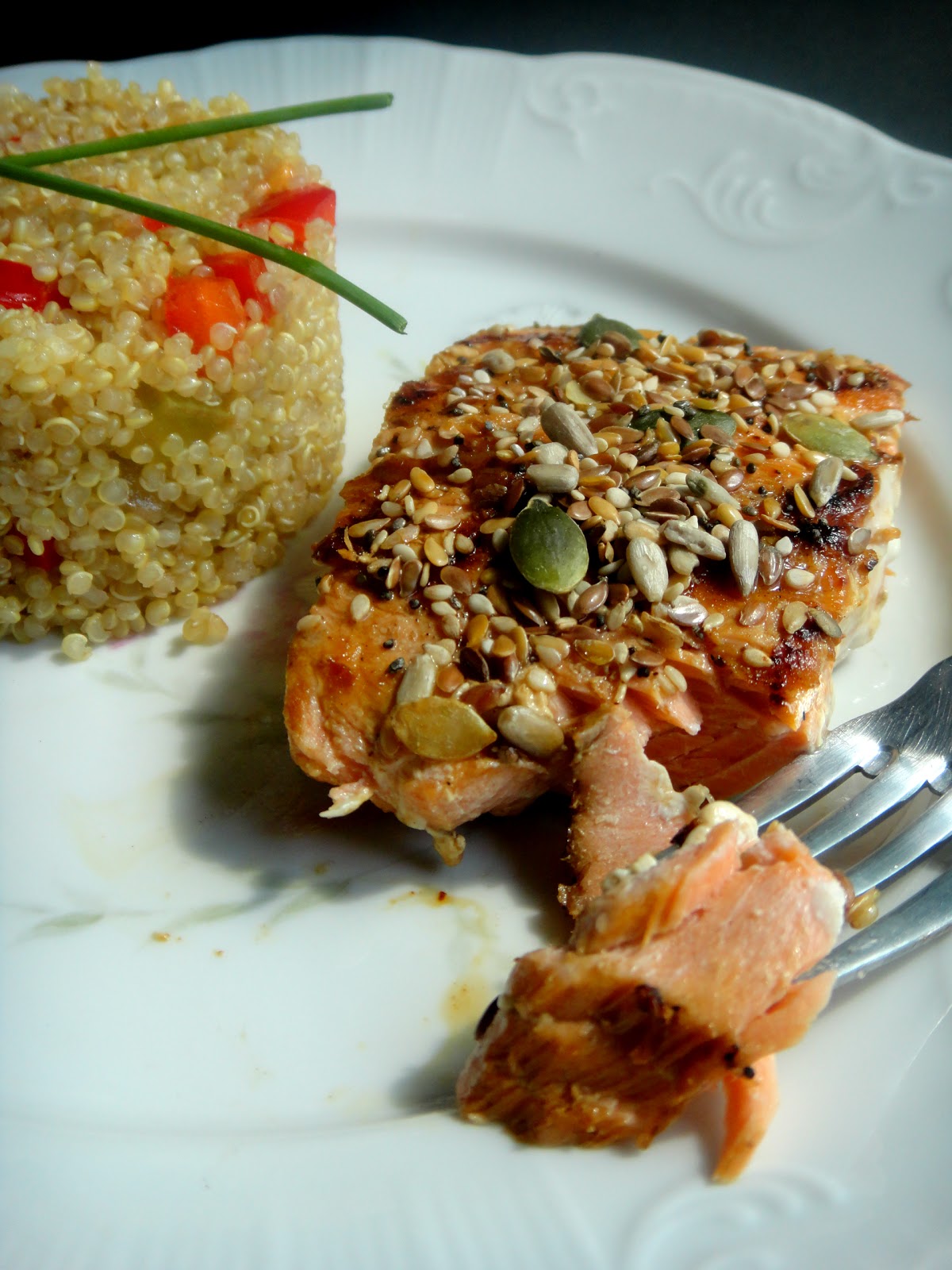 Adorei! O Salmão está maravilhoso com essa crosta de sementes e com quinoa... perfeito!