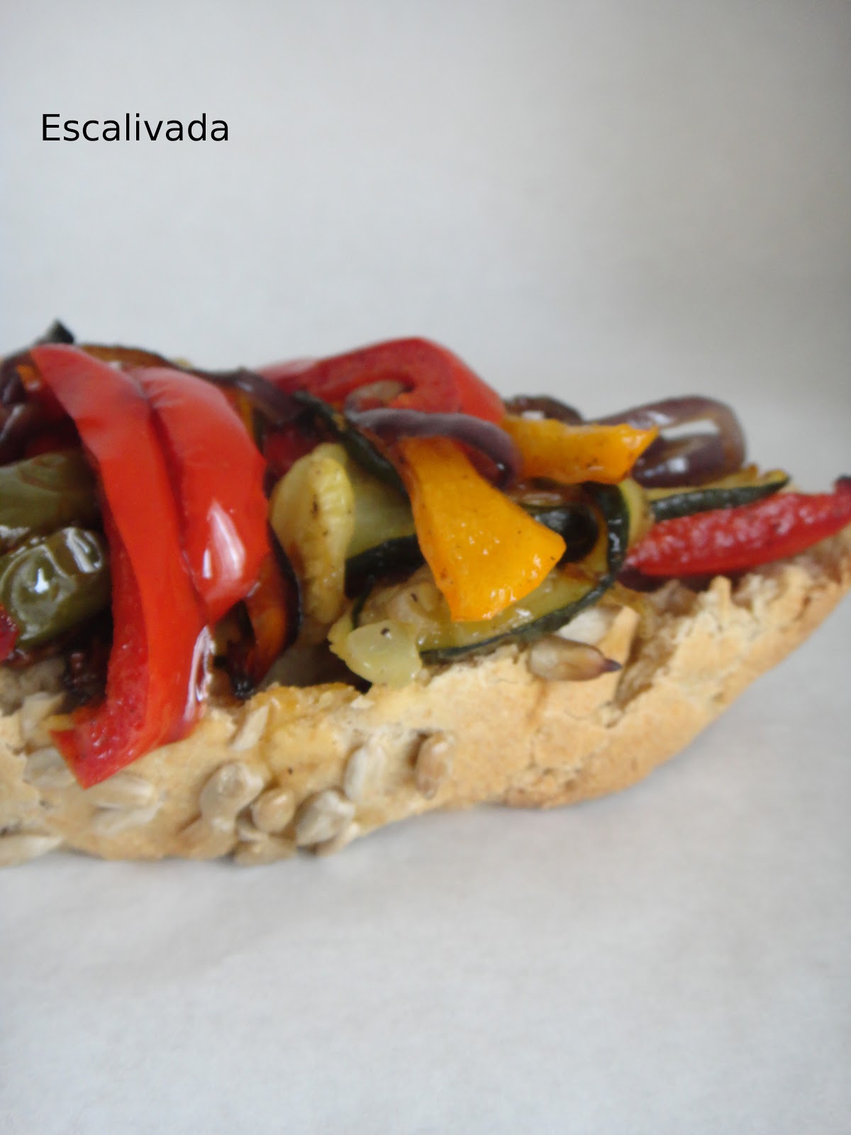 É uma das delicias mais simples que existem , escalivada vem do verbo escalivar que em catalão significa `assar al rescoldo`pode-se servir de várias maneiras , eu servi sobre uma fatia de pão.