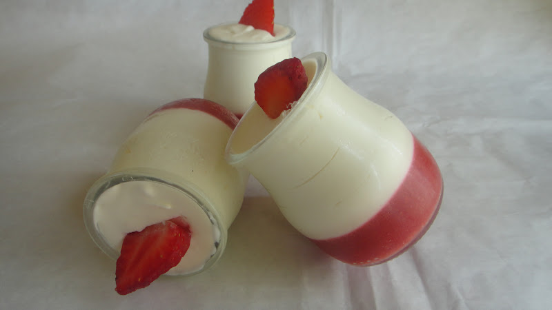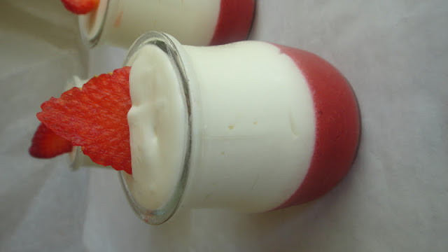 Quando vi esta panna-cotta no blog da MITO resolvi trazer a receita para fazer, mudei algumas coisas usei iogurtes cremosos açucarados e cortei no açúcar e a Mito terminou com gelatina de morango e eu fiz um creme com morangos.