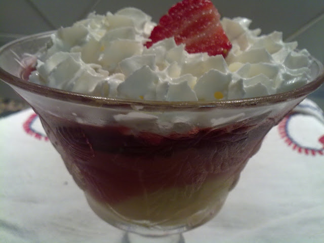 Como tinha sobrado meia embalagem de preparado de morangos do pavé e tinha que consumir em quatro dias, resolvi fazer esta sobremesa saida dum livro do pingo doce.