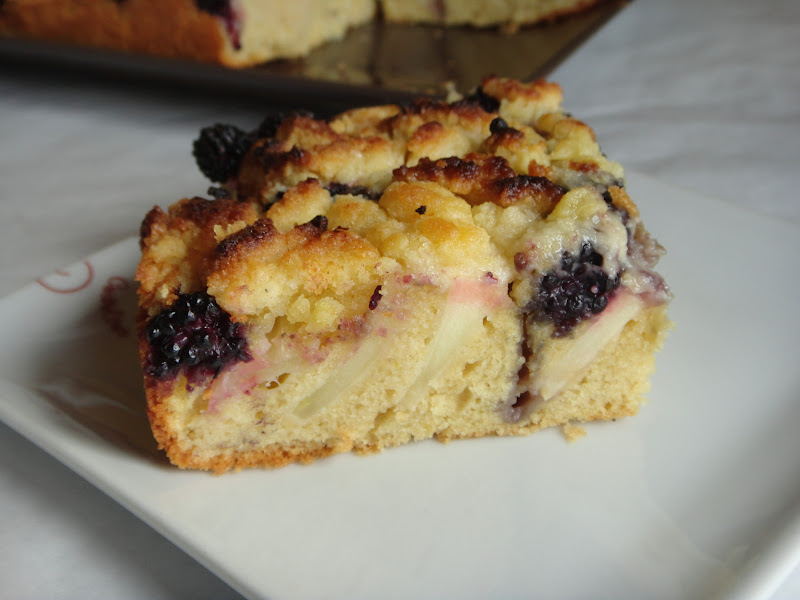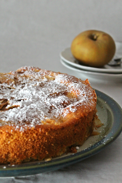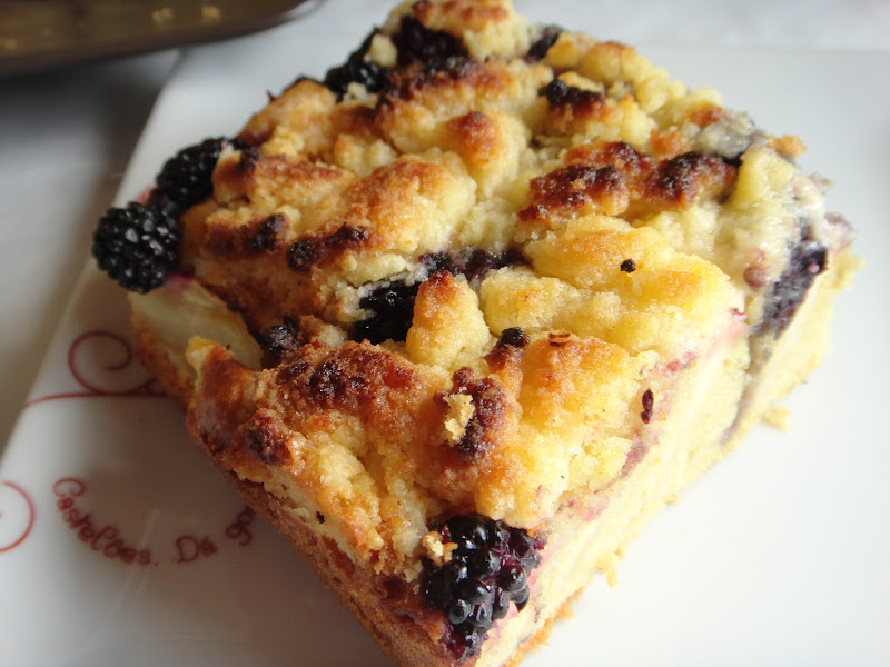 Deita-se a mistura sobre as maças cobrindo-as e misturando com a massa , etm que ficar algumas maças em cima da massa.