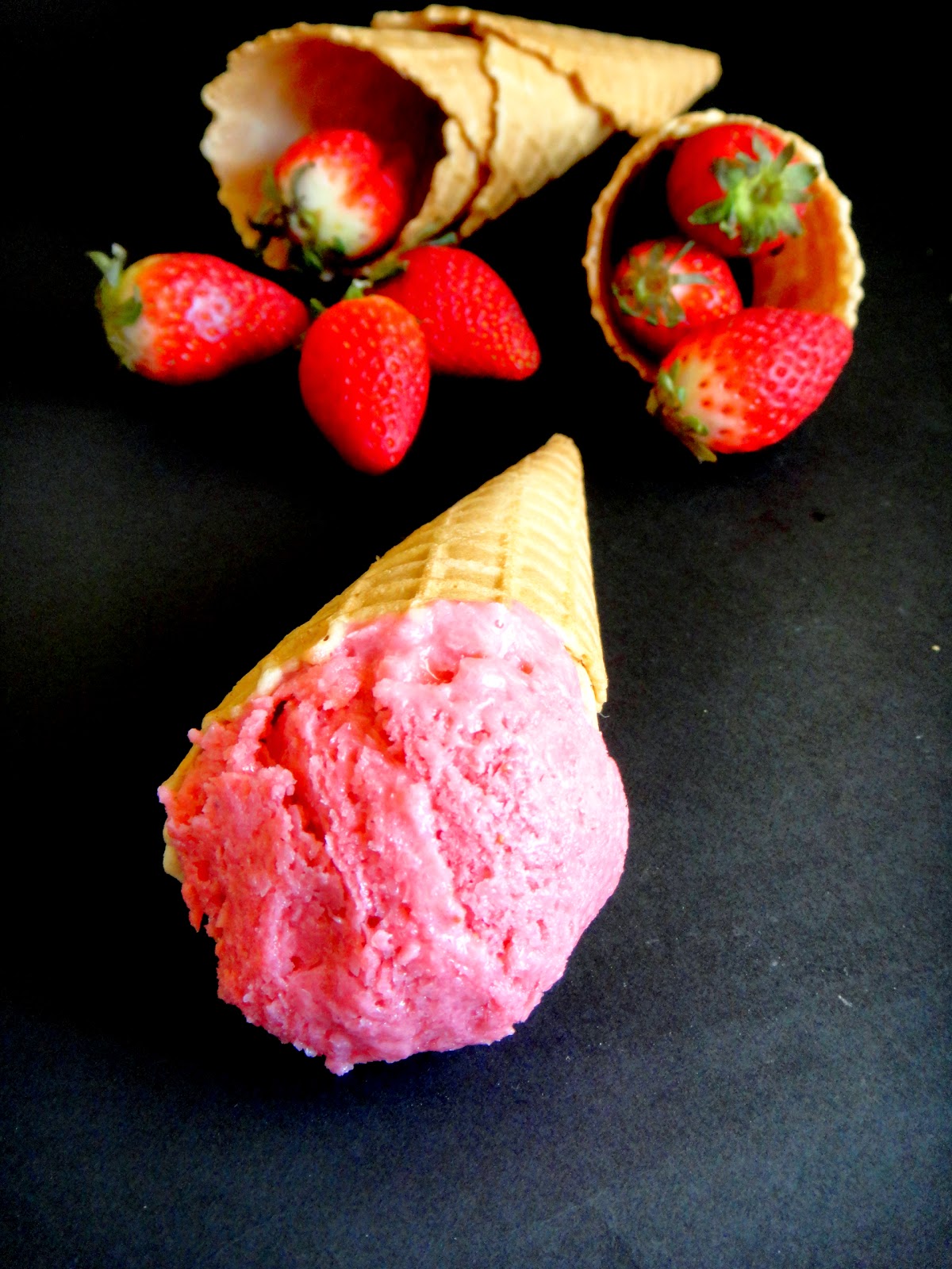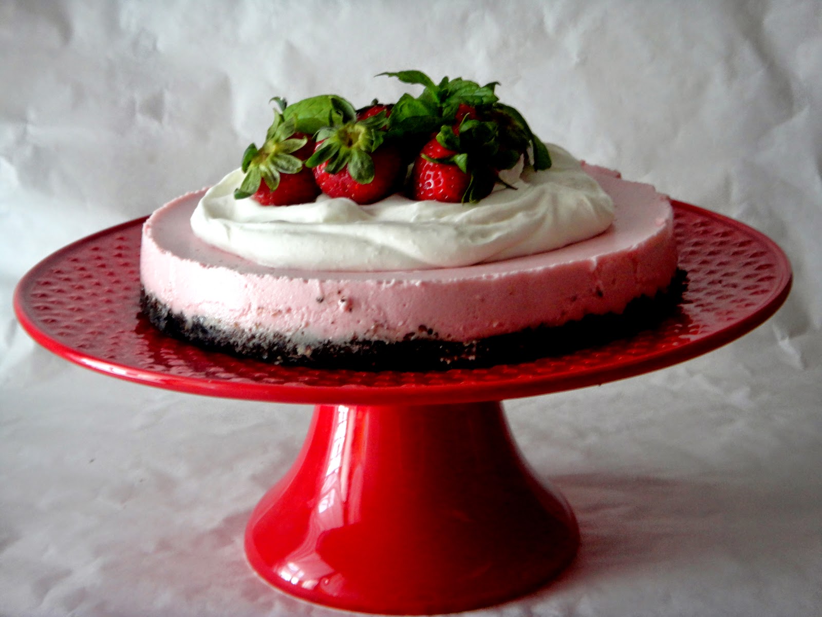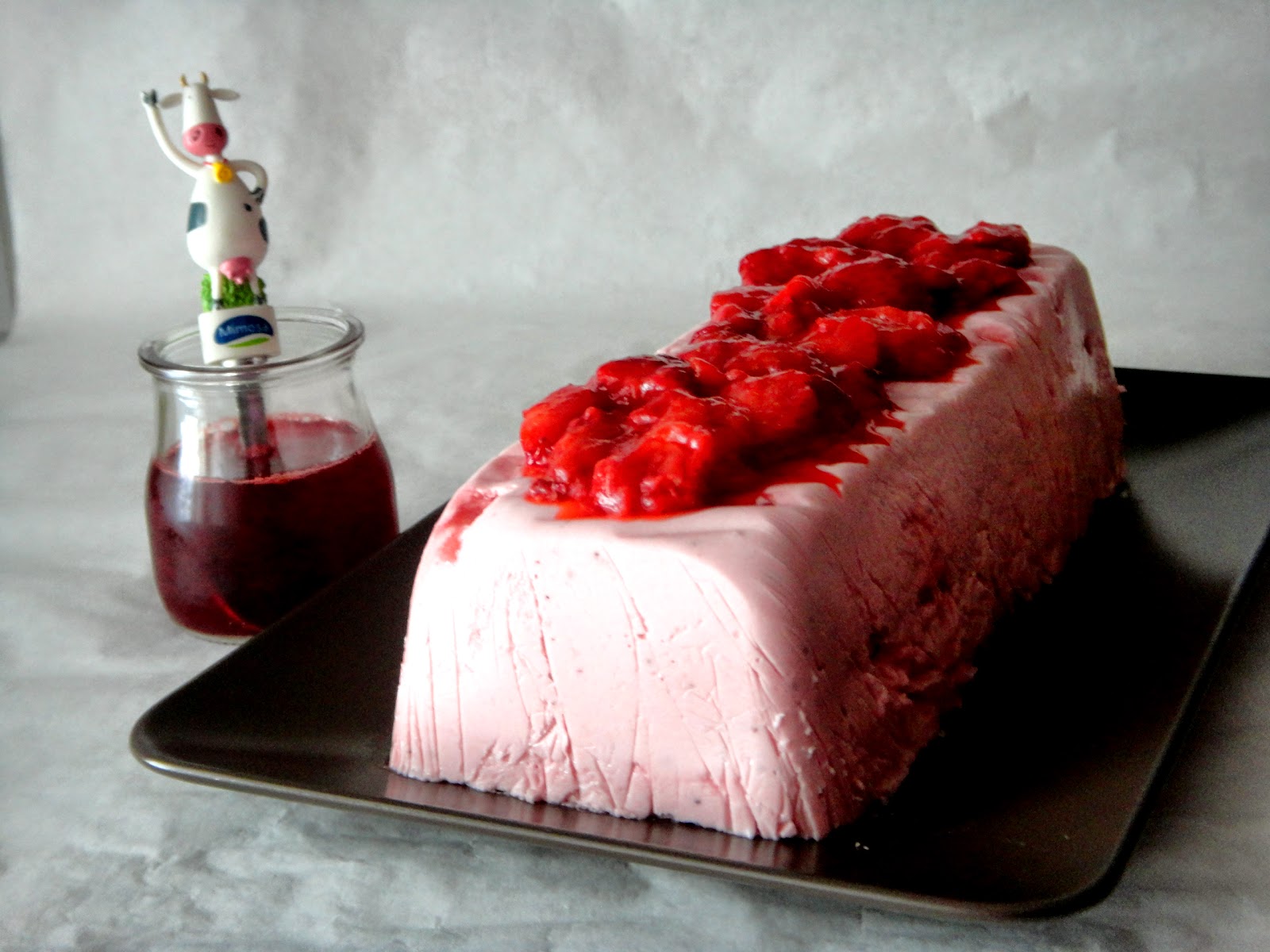 E deita-se o creme de morangos e vai ao congelador até solidificar um pouco.