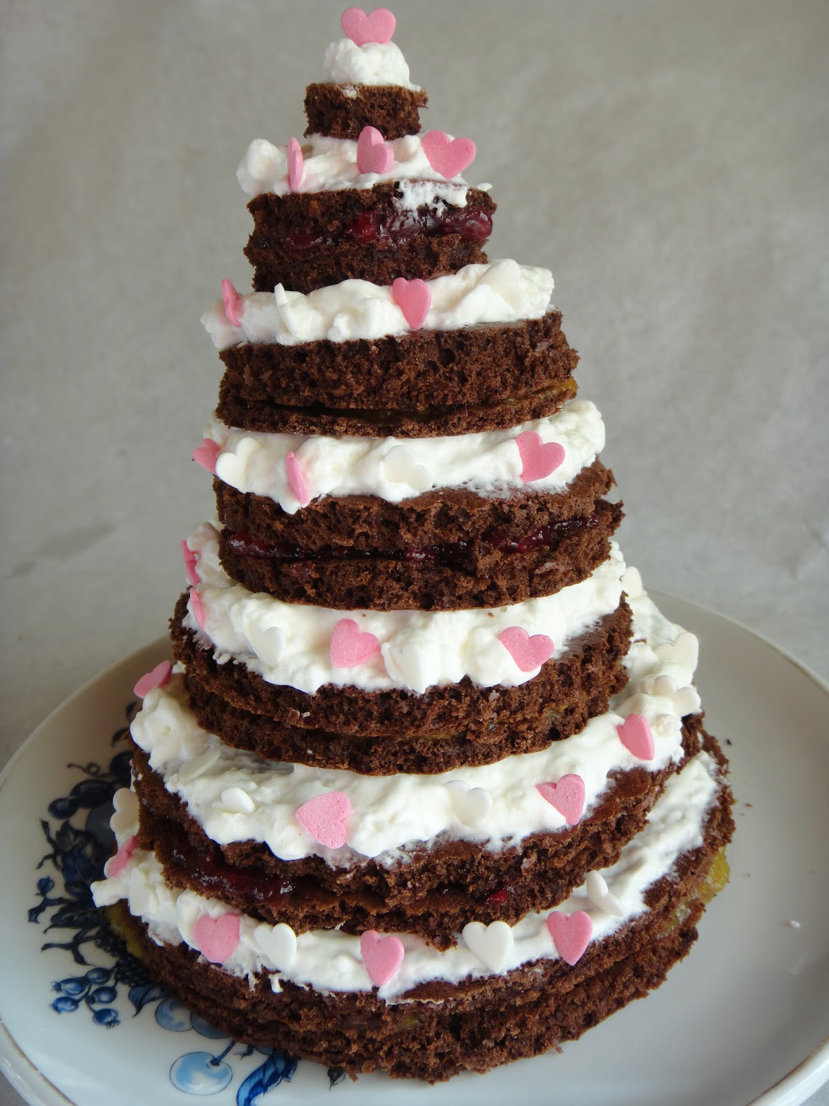 Coloca-se o circulo maior num prato e barra-se com chantilly , por cima coloca-se outro circulo menor e barra-se com chantilly.