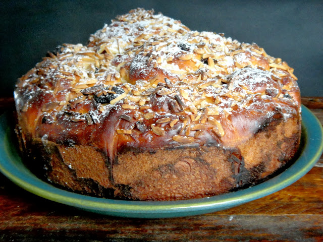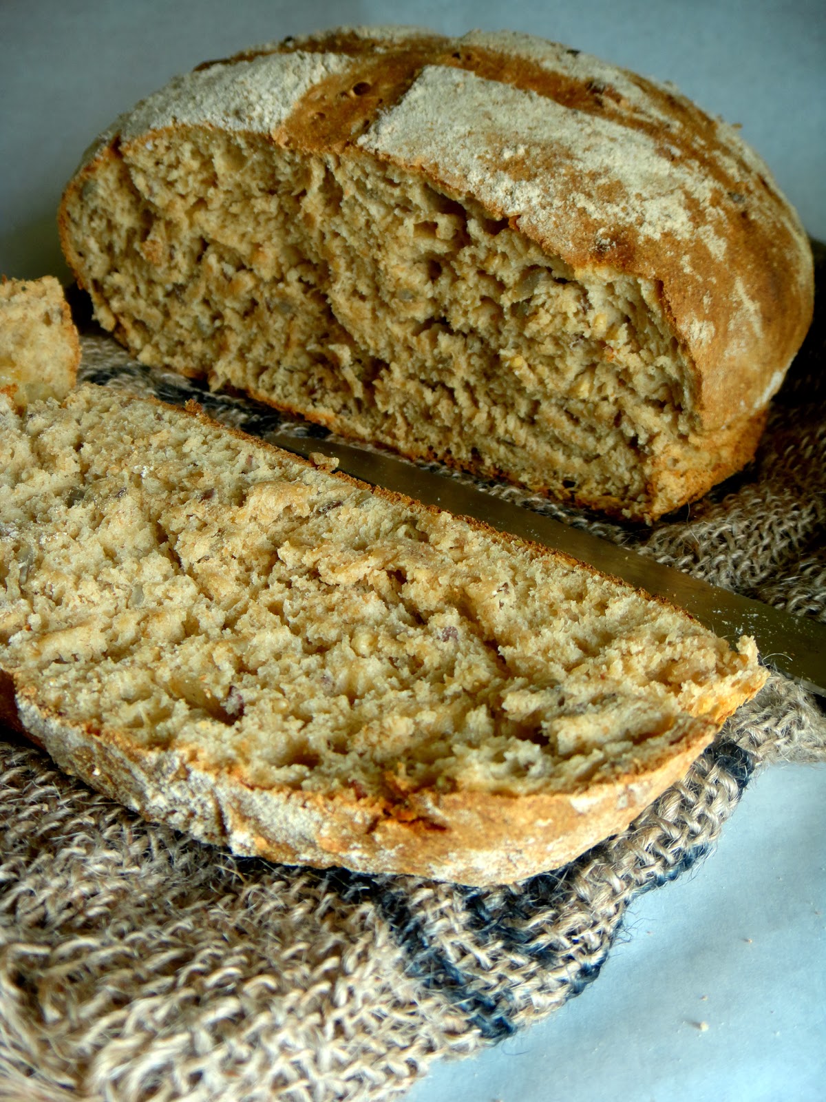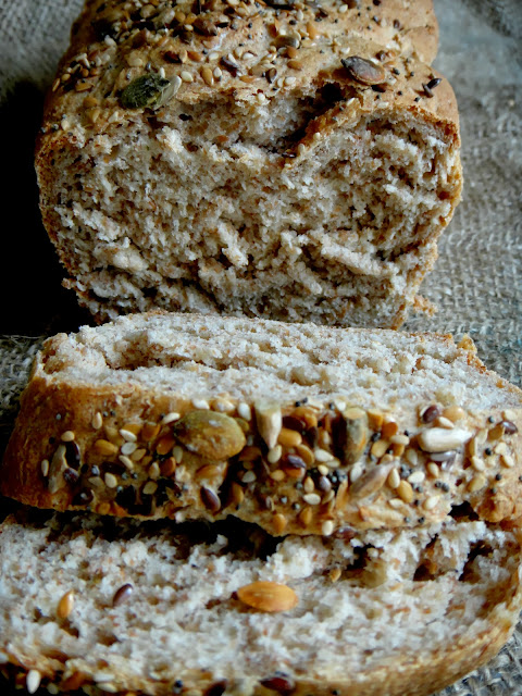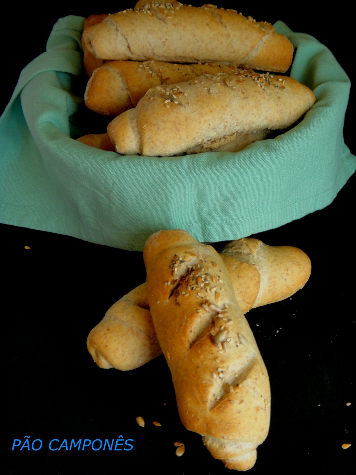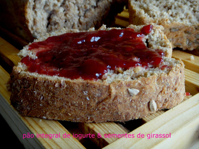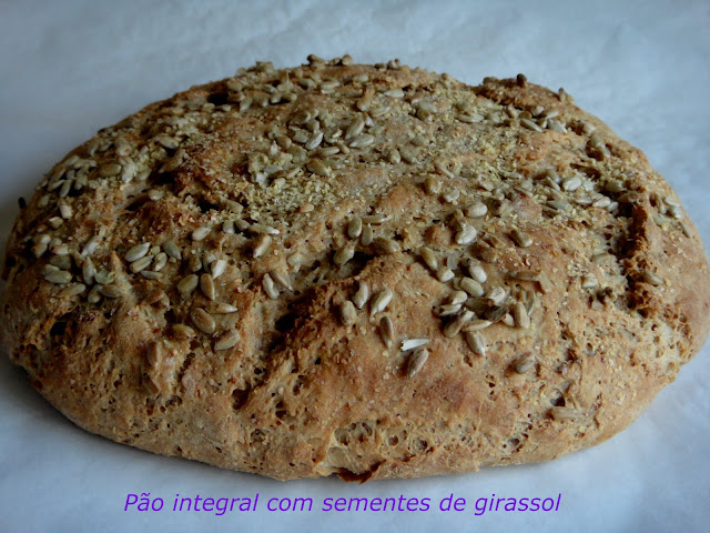 Desta vez usei farinha de centeio e polvilhei com sementes de girassol.
