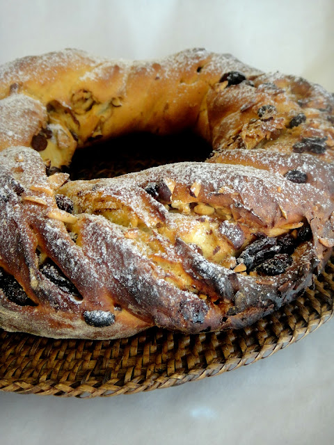 No fim do programa deita-se a massa numa zona enfarinha e forma-se um rolo que se coloca numa forma tipo bolo inglês,usei de silocone.