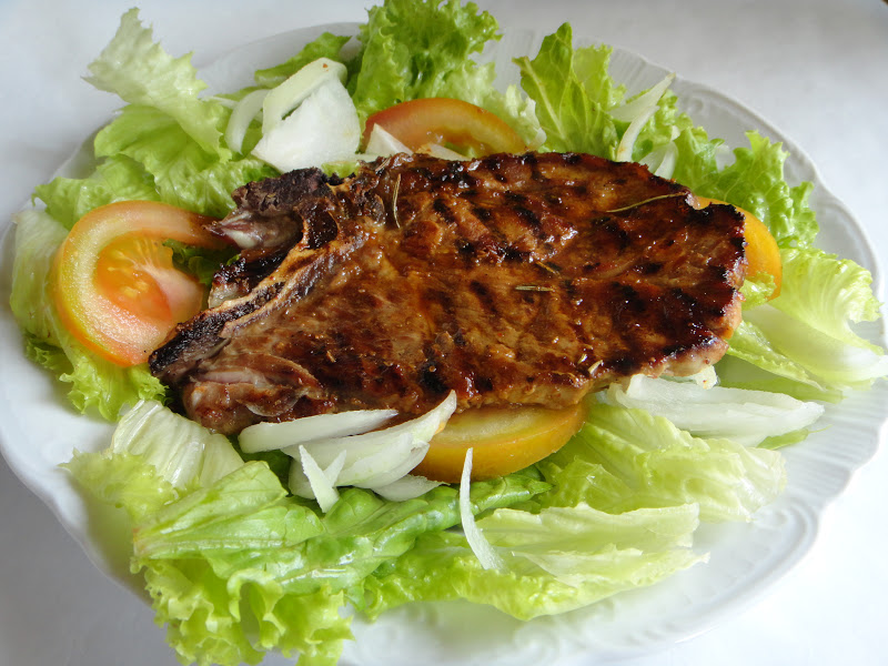 Coloca-se ao lume uma frigideira antiaderente, tempera-se a carne com sal e pimenta preta e deixa-se alourar de ambos os lados , até ficar tostado por fora , mas ainda rosado por dentro.