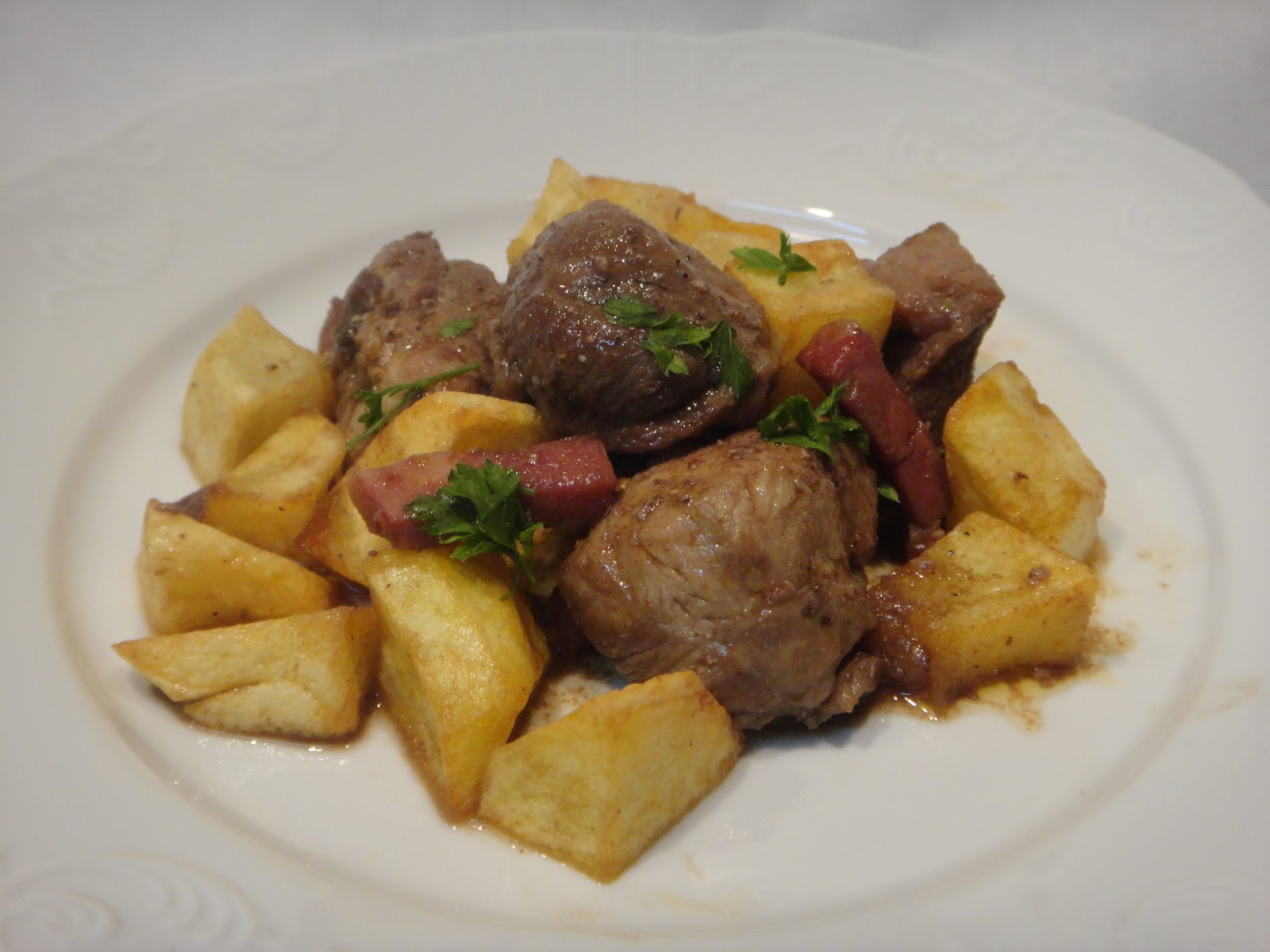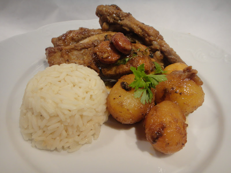 Rectificam-se os temperos e coloca-se a carne sobre o feijão assim como os sucos que tenha libertado.
