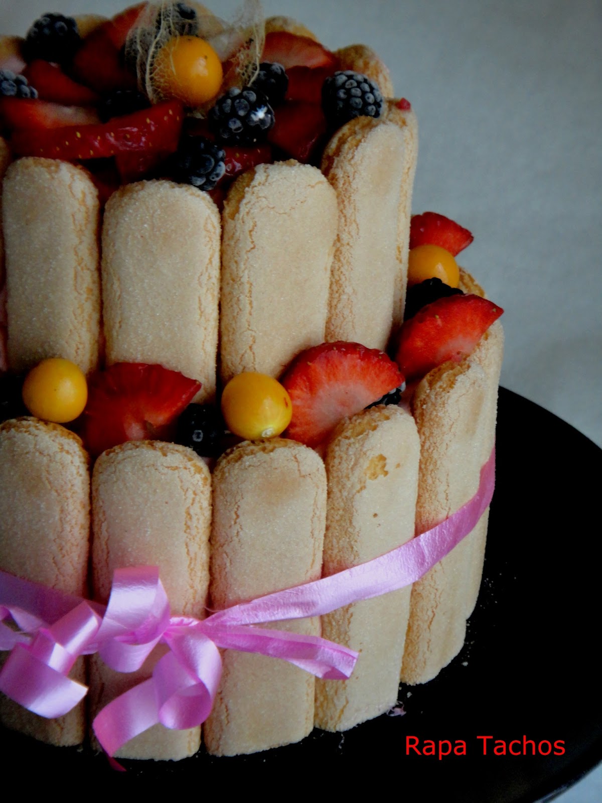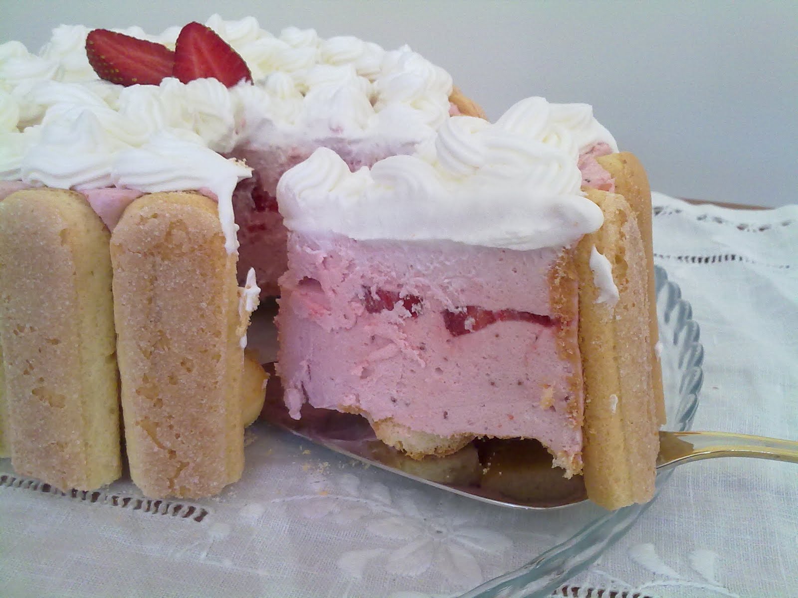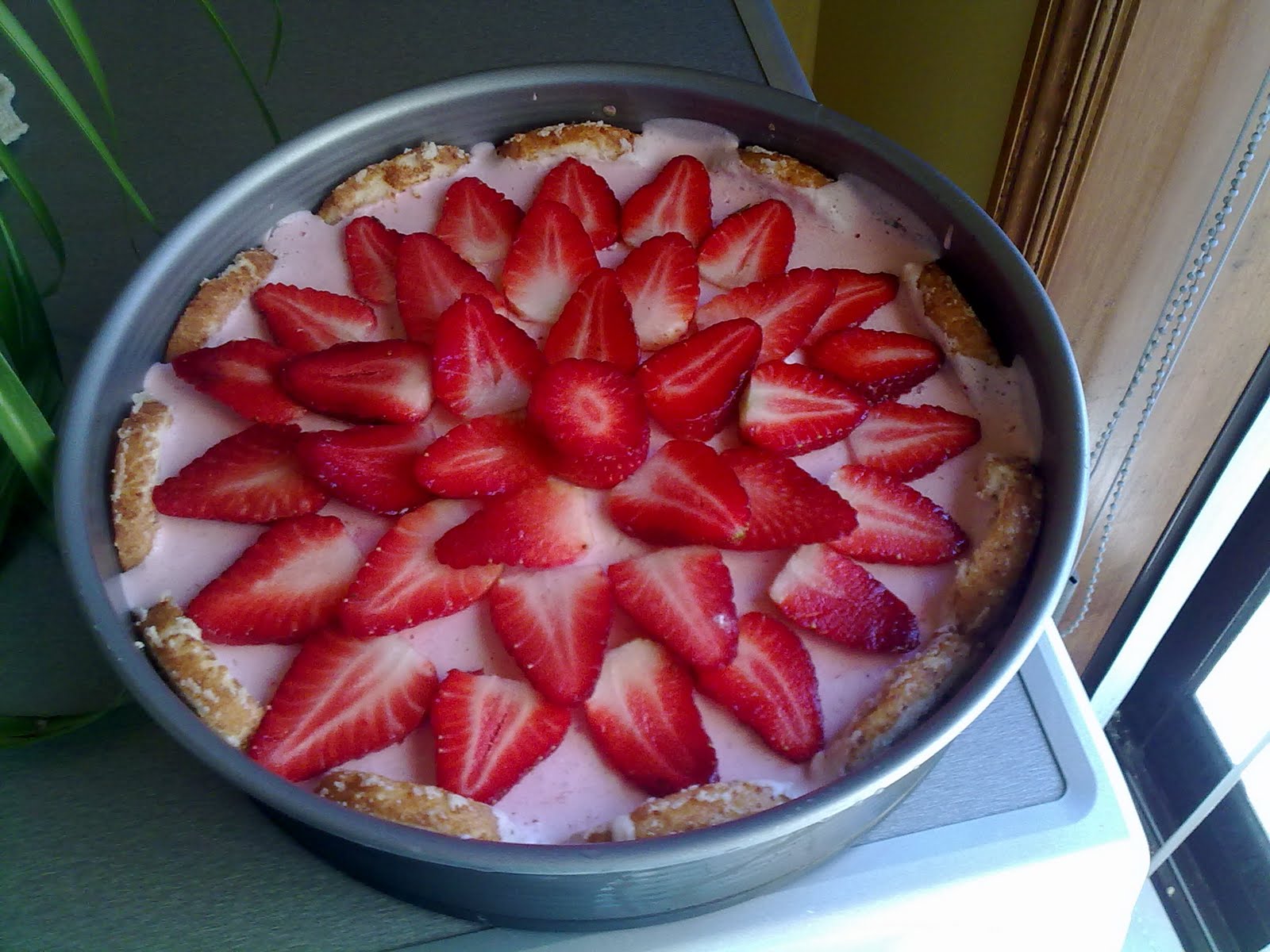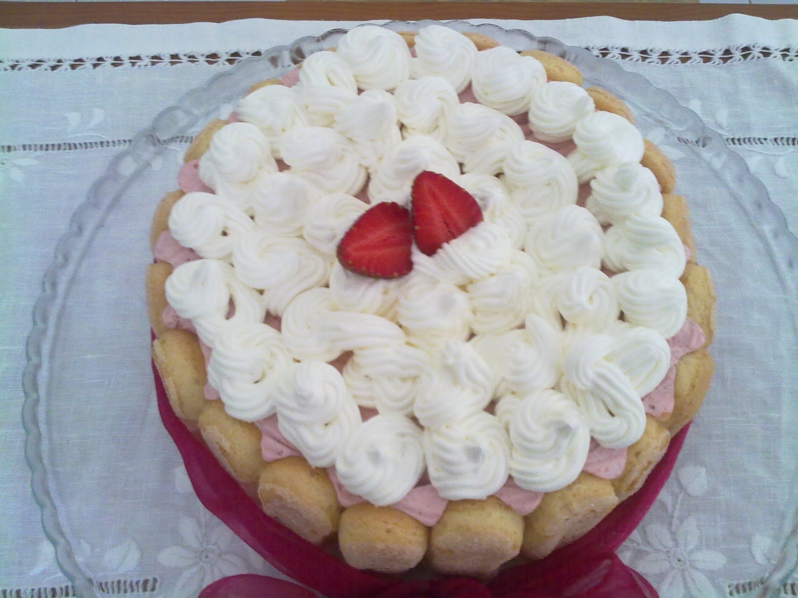 Na hora de servir, retira-se o aro , as folhas de acetato e decora-se com morangos ou outro fruto a gosto.