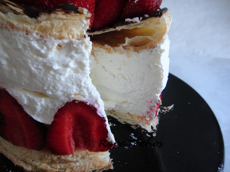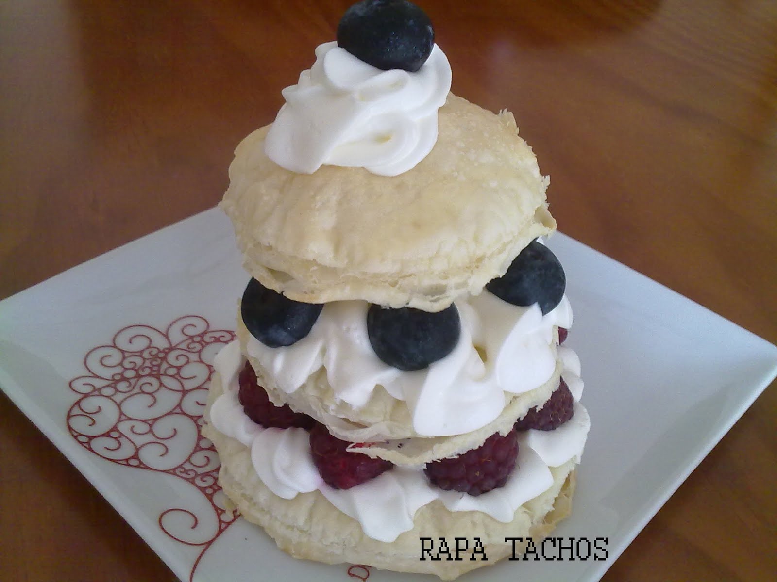 A receita original era com framboesas mas como não tinha usei frutos vermelhos.