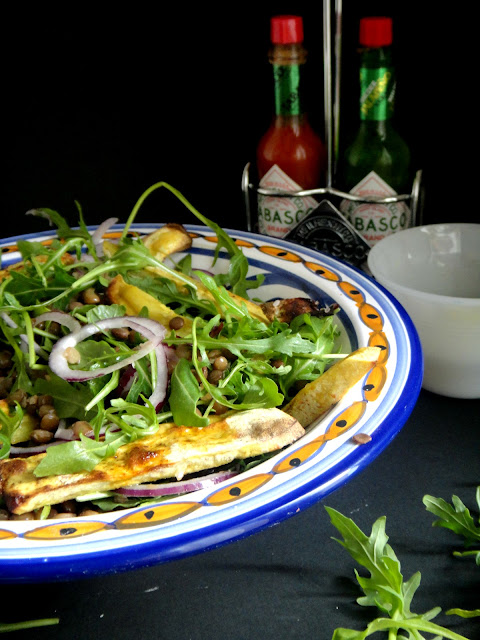 Juntei ainda uns canónigos e uma nectarina grelhada e ficou um refeição deliciosa e perfeita para estes dias quentes.